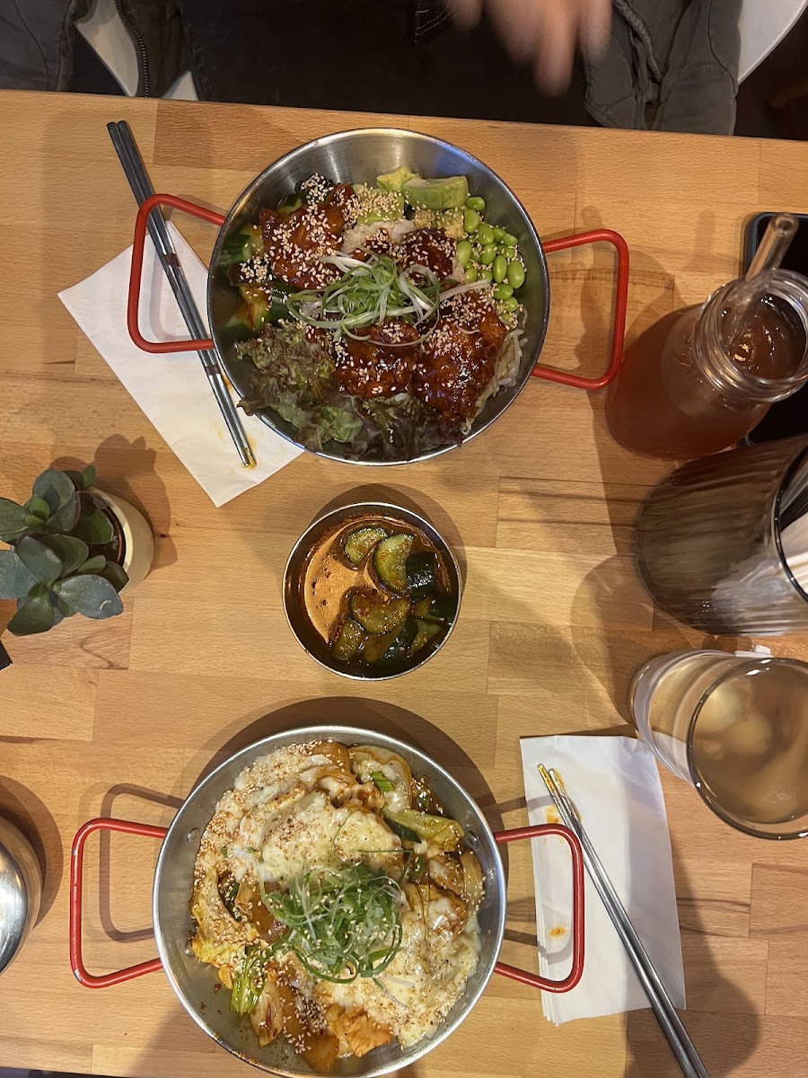 I found this restaurant walking around in my neighbourhood. And I was happy it was open because it was relatively early at mid-day. They have great spots for sitting outside but it was a little chilly so I sat inside, which is also very nice and cosy. I had the Crispy dakbap, it was delicious and a great quantity. The service was fast and they were very nice. I can only recommend it as a spot to have a nice lunch or even a nice dinner, especially in summer if one is able to sit outside.
