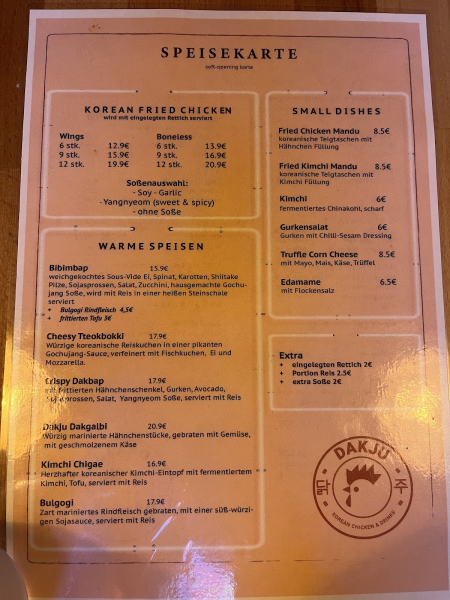 Welcome to Dakju Korean Chicken & Drinks, an authentic Korean culinary gem nestled in the heart of München. Located at Schulstraße 42, this delightful restaurant serves up mouthwatering Korean Fried Chicken that’s the star of the menu. Indulge in the crispy wings or bone-less thighs, both expertly fried to achieve that juicy perfection, each priced at just €13.90. Elevate your meal with some traditional sides like homemade Gochujang sauce or pickled radish, each for €2.00.